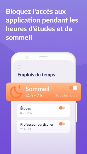 Kids360 intègre une fonctionnalité de gestion du temps d’écran simple et efficace : la possibilité de définir des limites de temps pour chaque application utilisée par l’enfant. Cette fonctionnalité permet aux parents de contrôler précisément le temps consacré aux jeux et aux divertissements, offrant ainsi un équilibre sain entre la technologie et d’autres activités essentielles. Il permet aussi d’appliquer plus de temps pour certaines applications éducatives.