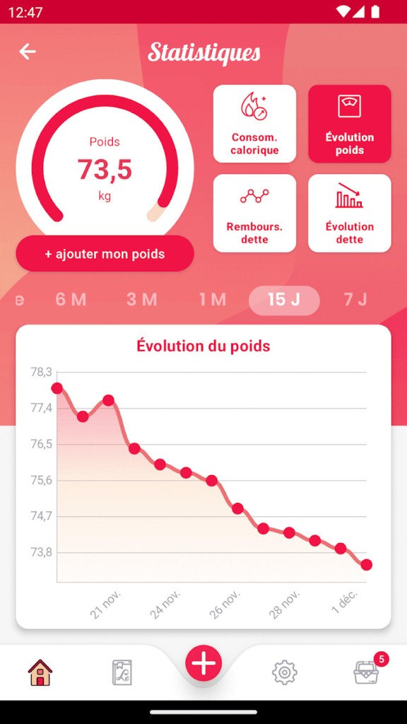 LSDP s’adapte à vos besoins et à vos objectifs personnels. Vous souhaitez perdre du poids ? L’application vous guide pour ajuster votre consommation calorique de manière réaliste et durable. Vous préférez stabiliser votre poids ? Elle vous aide à maintenir l’équilibre. Et si votre objectif est de prendre du poids, l’application offre également des conseils et un suivi adaptés à cette démarche.