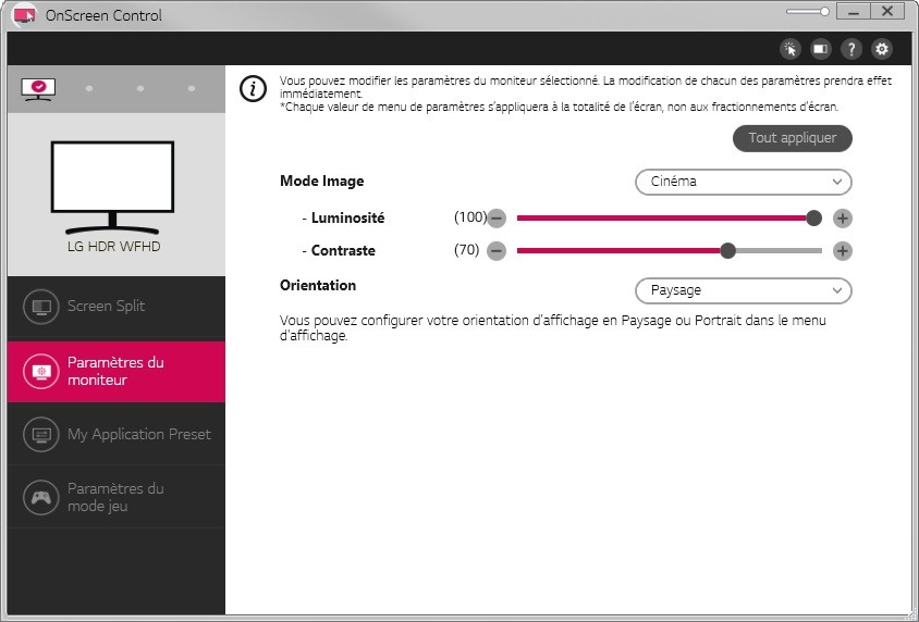 OnScreen Control est une application gratuite développée par LG pensée pour vous permettre de gérer et de personnaliser les paramètres de vos moniteurs.
