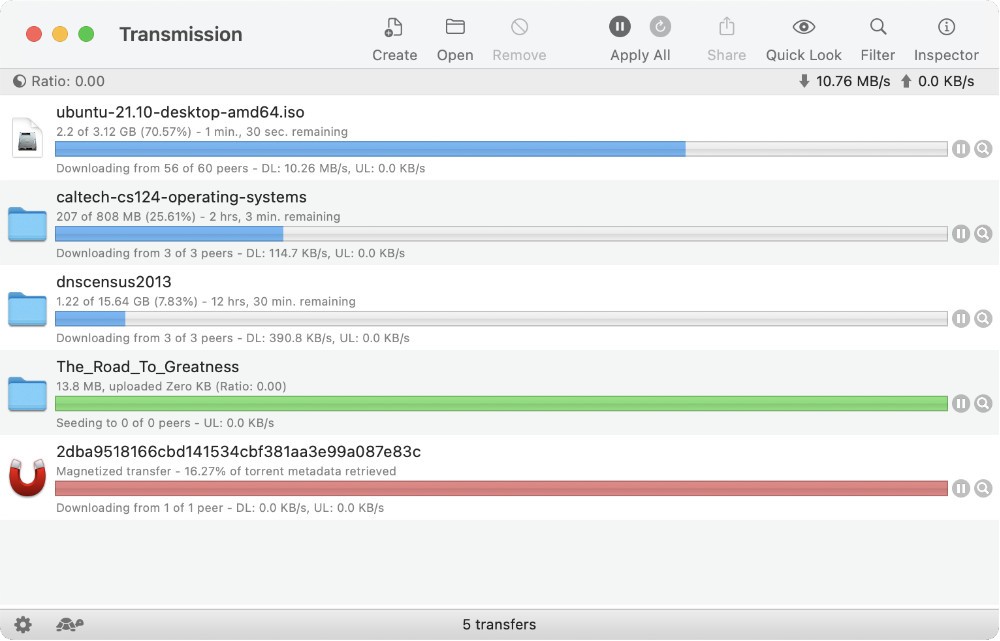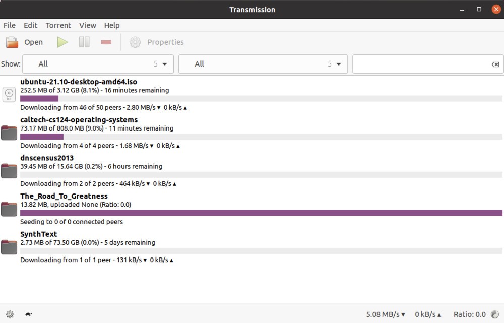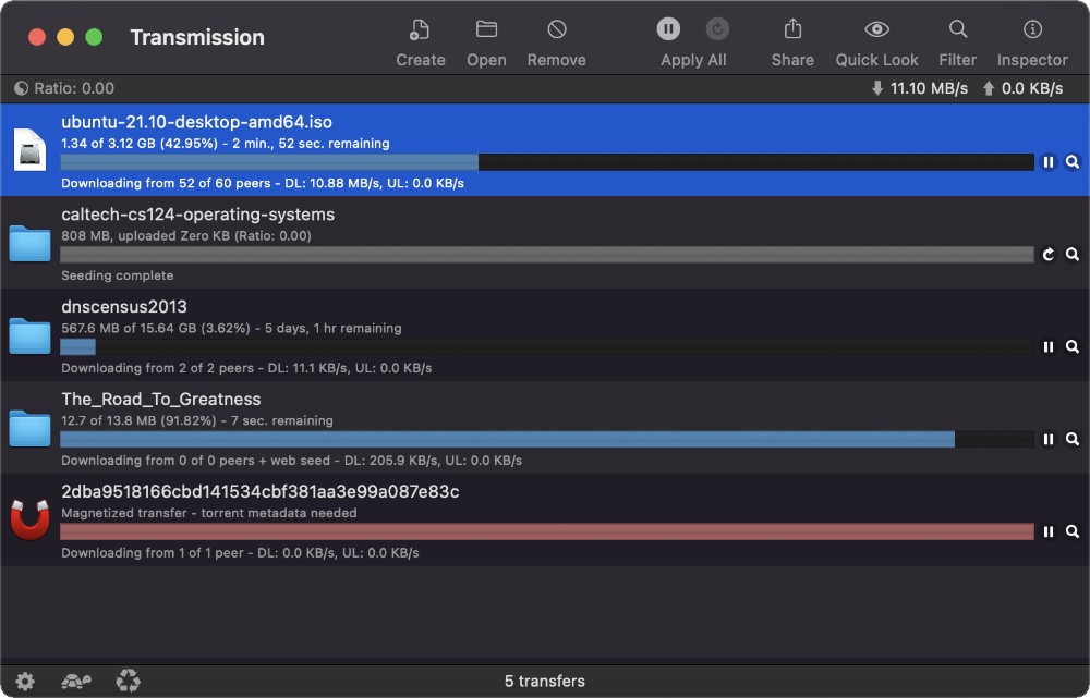 Ce client BitTorrent, édité par Transmission Project, est conçu pour une utilisation à la fois puissante et conviviale. Il offre une solution polyvalente pour accéder au réseau pair à pair BitTorrent, en prenant en charge l’ouverture des fichiers avec des extensions TORRENT ainsi que les liens Magnet. Vous pouvez lancer plusieurs téléchargements en simultané, et même définir des priorités pour chacun d’entre eux.