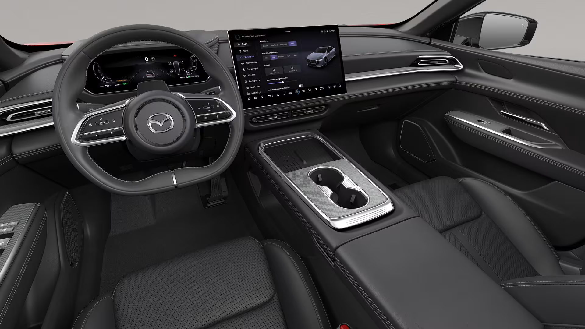 À bord, cette dernière embarque un écran central tactile de 14,6 pouces, une instrumentation numérique de 10,2 pouces et un affichage tête haute en réalité augmentée. Les finitions Takumi misent sur des matériaux nobles, avec cuir Nappa et suédine en version Takumi Plus. Sous le capot, la Mazda 6e fait le choix de la propulsion sur l’ensemble de sa gamme. Deux versions sont proposées : une batterie LFP de 68,8 kWh associée à un moteur de 258 ch, et une déclinaison Long Range de 80 kWh développant 245 ch. L’autonomie grimpe jusqu’à 479 km WLTP pour la première et 552 km pour la seconde. En recharge rapide, la version 68,8 kWh accepte jusqu’à 200 kW et passe de 10 à 80 % en 22 minutes, tandis que la variante 80 kWh se montre plus limitée. Malgré son hayon, le coffre reste modeste avec 330 litres.