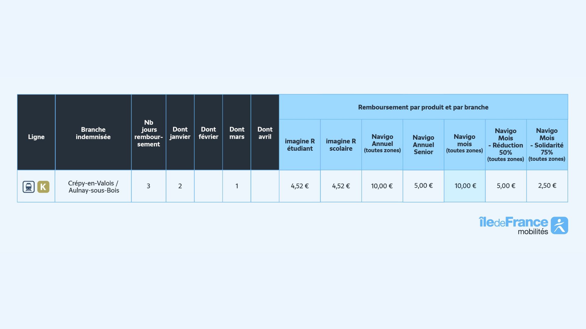 « C’est toujours le dernier forfait que vous avez détenu sur le dernier mois affichant un niveau d’offre de transport inférieur à 33 % qui sera pris en compte pour la base de calcul du remboursement », précise Île-de-France Mobilités.