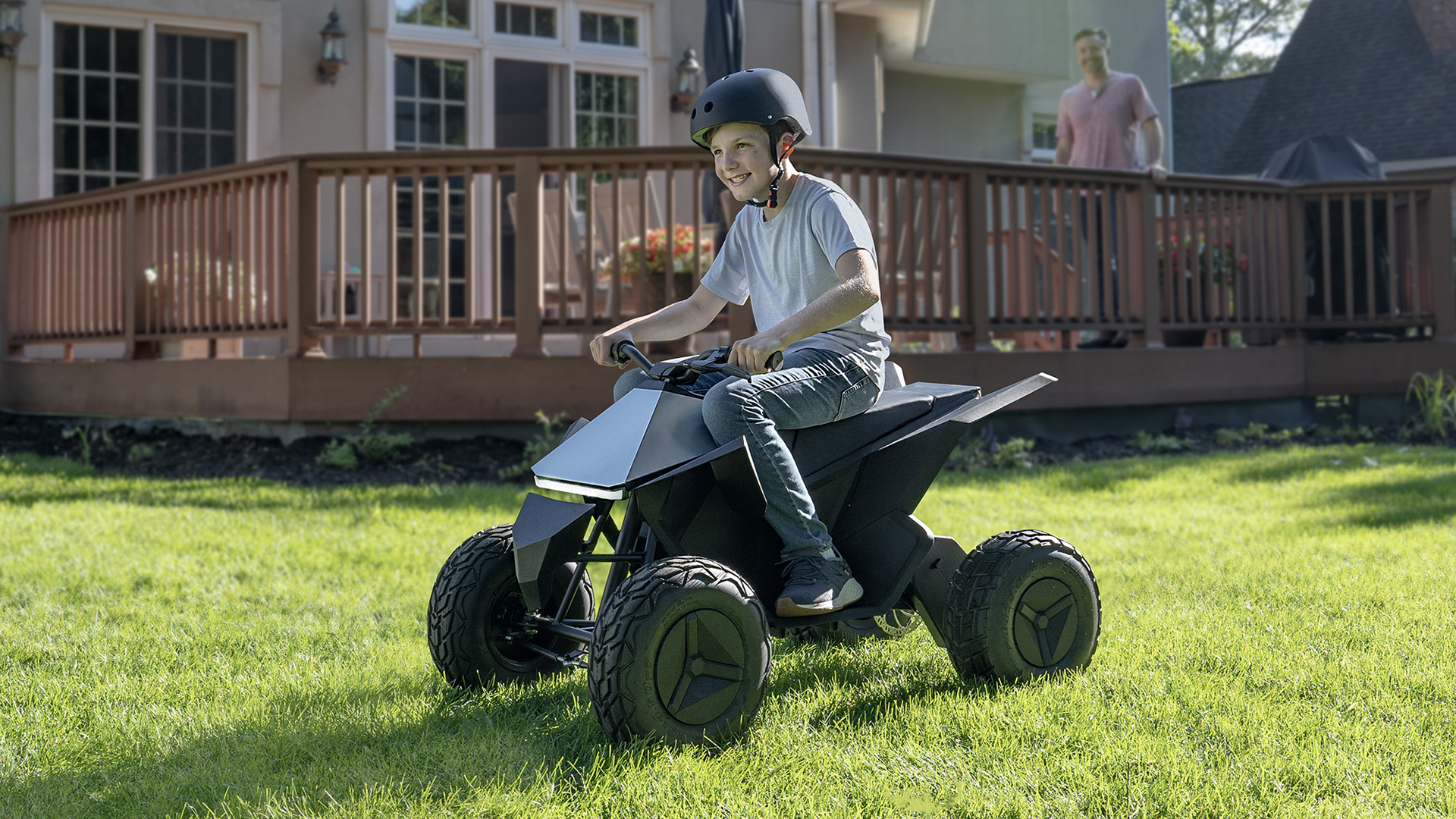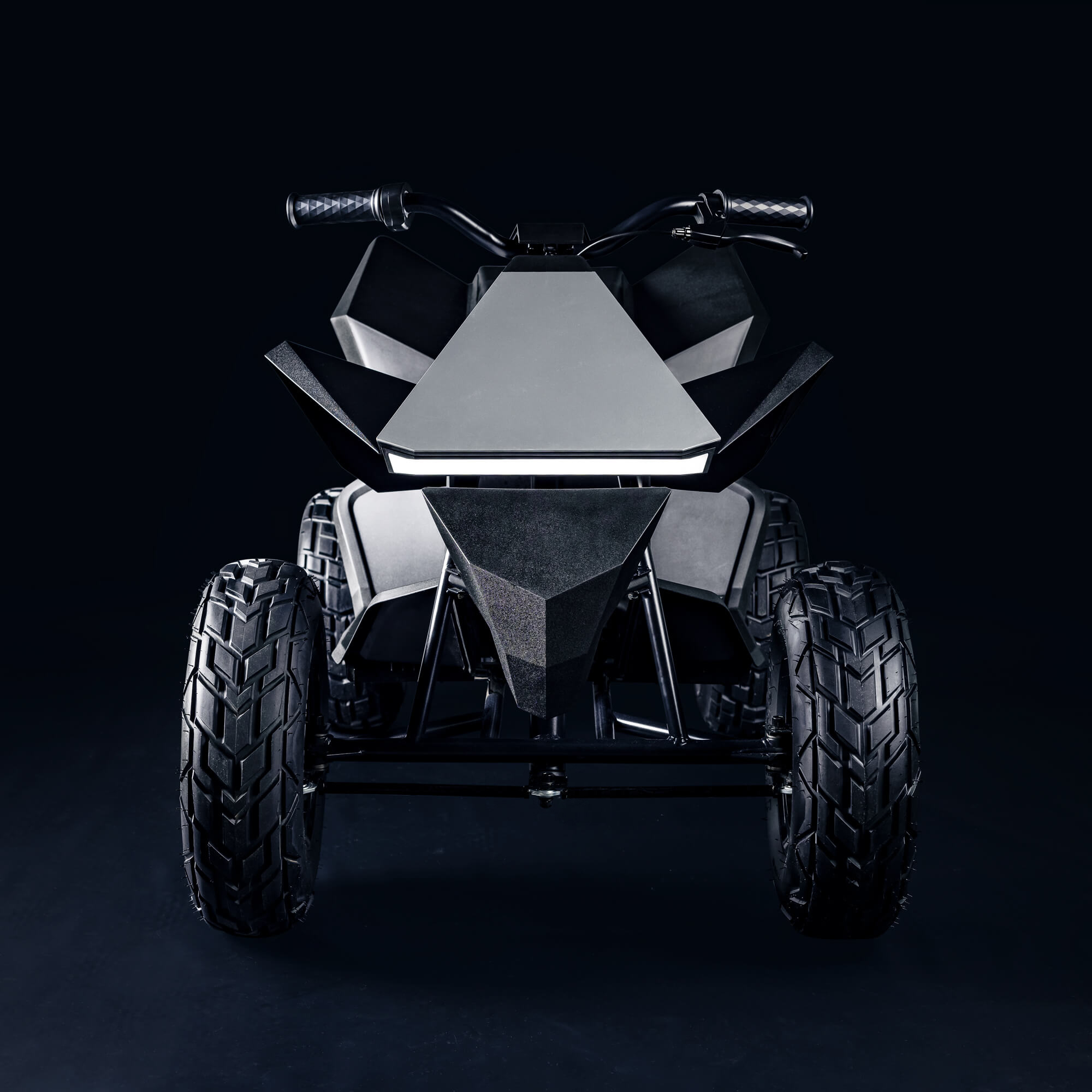 Le Cyberquad dispose d’un siège rembourré pour son conducteur, mais pas sûr qu’il soit aussi confortable que celui du vrai pickup. En tout cas, les pneumatiques de l’engin semblent être assez adaptés au tout-terrain (comme le Cybertruck) pour bien ruiner le jardin des parents.