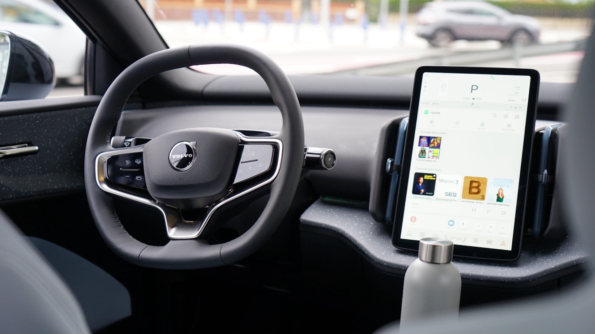 Certains regretteront sans doute l’absence totale de boutons de commande. Tout se joue sur l’écran, ce qui implique parfois d’enchaîner les manipulations pour accéder à des fonctions élémentaires. D’autres ne pardonneront peut-être pas à l’EX30 l’absence d’un second écran placé derrière le volant ou, au moins, d’un affichage tête haute pour bénéficier d’une meilleure visibilité sur des choses essentielles quand on conduit. Là encore, tout est une question de compromis, avec des ingénieurs qui ont pensé à des petites astuces pour réduire le nombre de pièces. Par exemple, les traditionnels haut-parleurs situés dans les portes sont remplacés par une barre de son située au fond de la planche de bord. Ce qui, au passage, parle beaucoup aux gens, d’un point de vue marketing.
