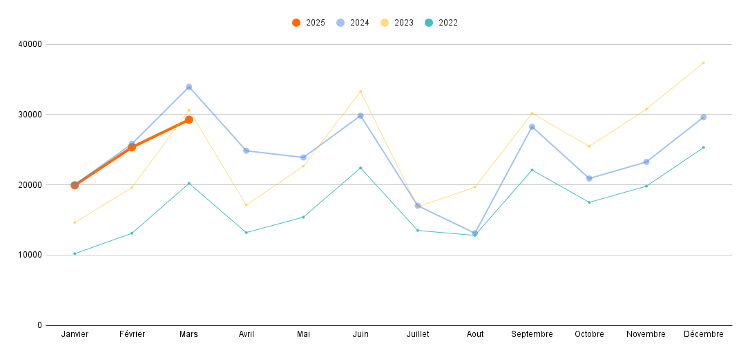 La star de Renault – la R5 – a enregistré 3 340 immatriculations en mars 2025. C’est son deuxième meilleur résultat, après un mois de décembre 2024 particulièrement chargé en livraisons (sous le sapin).