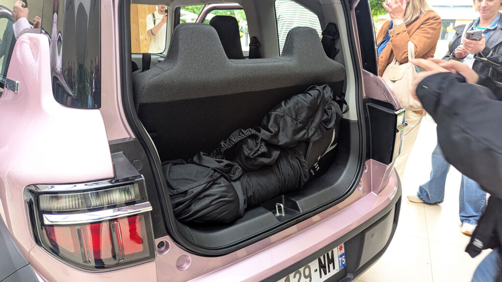 Pour l’avoir observé de près, le Vinfast VF3 soulève quand même des doutes. Peut-il vraiment convaincre les clients européens ? Les véhicules 3 portes sont devenus rares, car peu pratiques. En plus, ce VF3 n’a aucun coffre, à moins de rabattre la banquette arrière, transformant le véhicule en 2 places. L’intérieur est spartiate : des plastiques durs, des sièges en tissu, pas de rangement, aucune fioriture, juste un écran central qui apporte de la modernité. Malgré des performances limitées et cet intérieur basique, le VF3 est bien considéré comme une voiture, enfin une mini-voiture et non comme un quadricycle lourd.