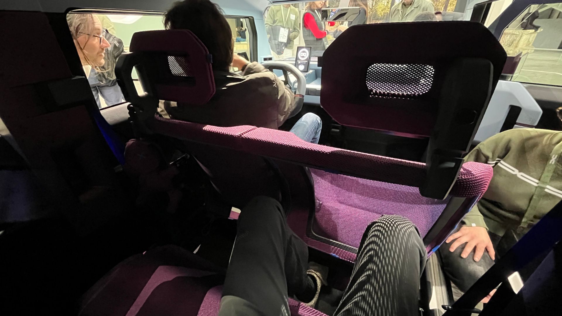Malgré sa taille réduite, le concept Hipster ne reste pas moins logeable pour quatre adultes. Les places avant ont pour particularité d’avoir des dossiers en maille textile souple, laquelle est fixée à l’armature du siège via un élastique (essentiel on vous a dit). Les assises sont collées les unes aux autres donnant l’impression d’une banquette.