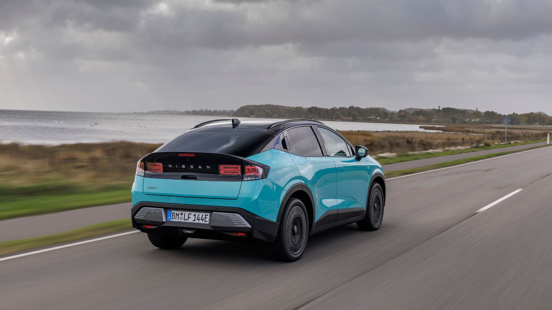 Lorsque l’on regarde dans le rétro, on ne peut pas nier que les anciennes générations de l’électrique japonaise possédaient un physique des plus atypiques. Cette nouvelle carrosserie de SUV est dorénavant plus homogène, tout en ne manquant pas d’originalité. À l’arrière, Nissan joue légèrement la carte du néo-rétro avec un petit becquet, tandis que la signature lumineuse en 3D apporte une touche de modernité.