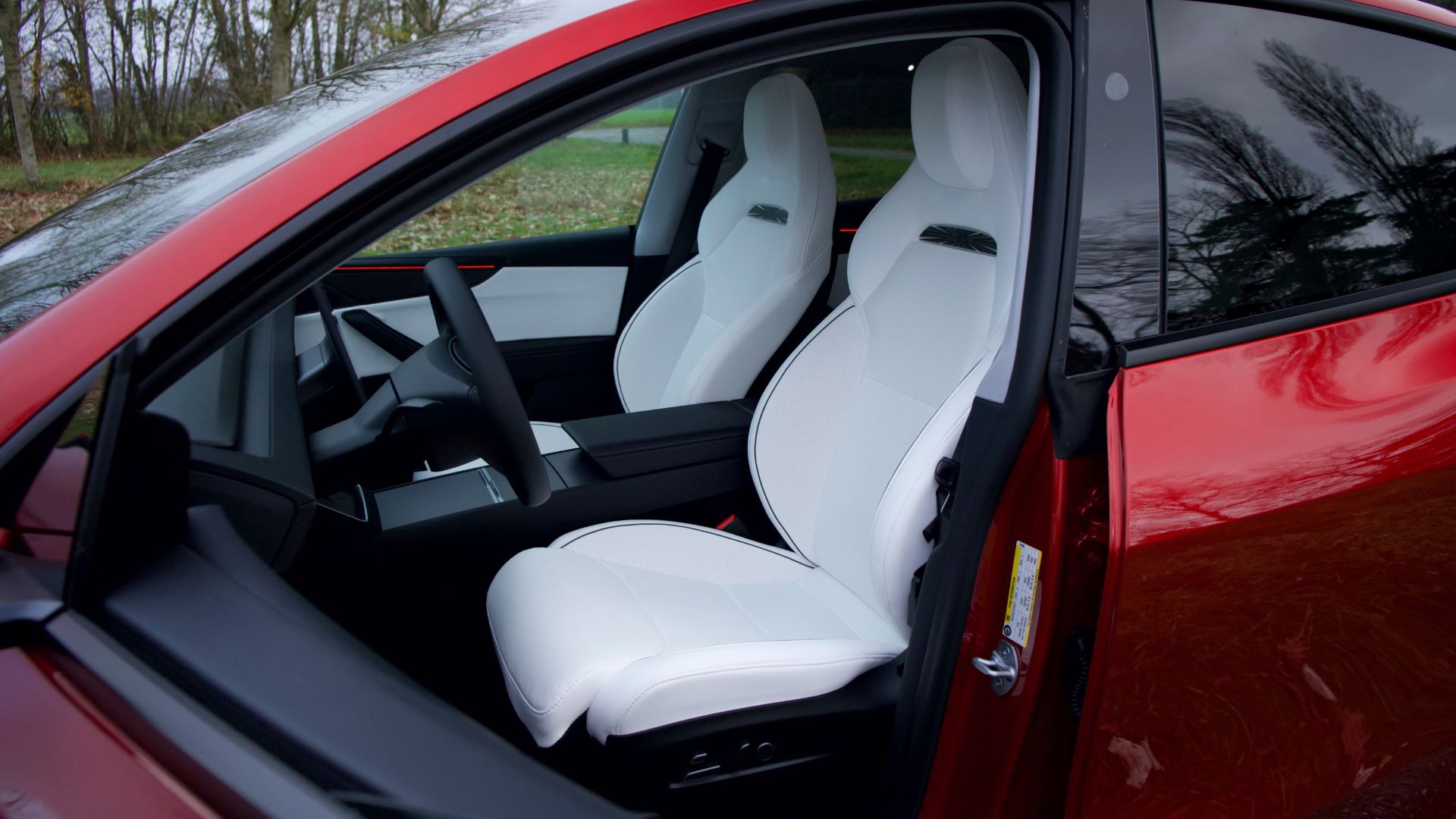 Heureusement, on peut se consoler dans les sièges sport à l’excellent confort et au bon maintien en conduite « dynamique ». Ces derniers sont d’autant plus splendides avec cet intérieur d’un blanc immaculé et on apprécie toujours qu’ils soient de série chauffants et ventilés. Exclusivement sur ce modèle Performance, on trouve un nouveau réglage électrique permettant d’allonger l’assise pour un meilleur support des jambes, comme sur le Model Y L en Chine.