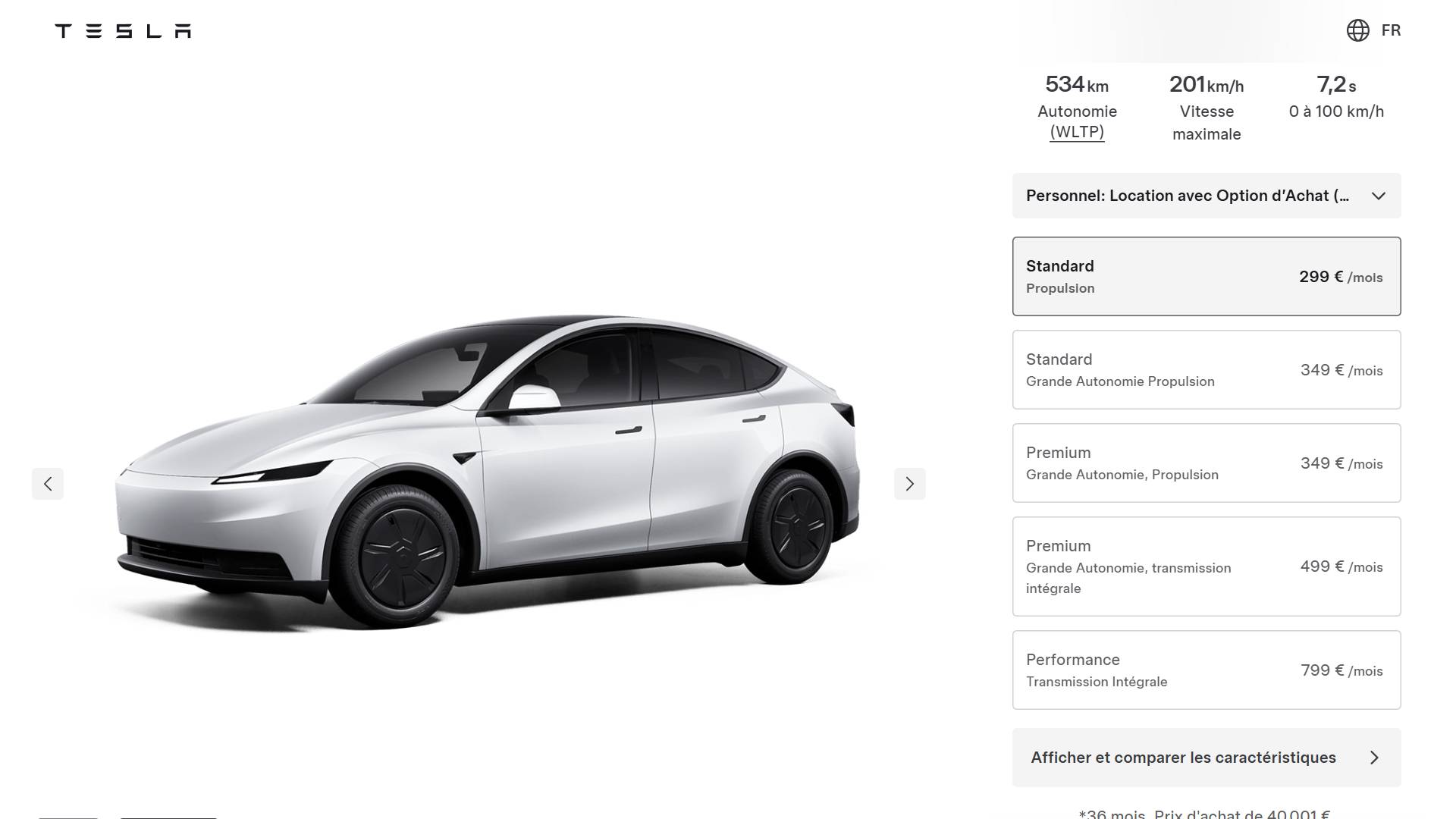 - Model Y Standard Grande Autonomie Propulsion – 44 990€