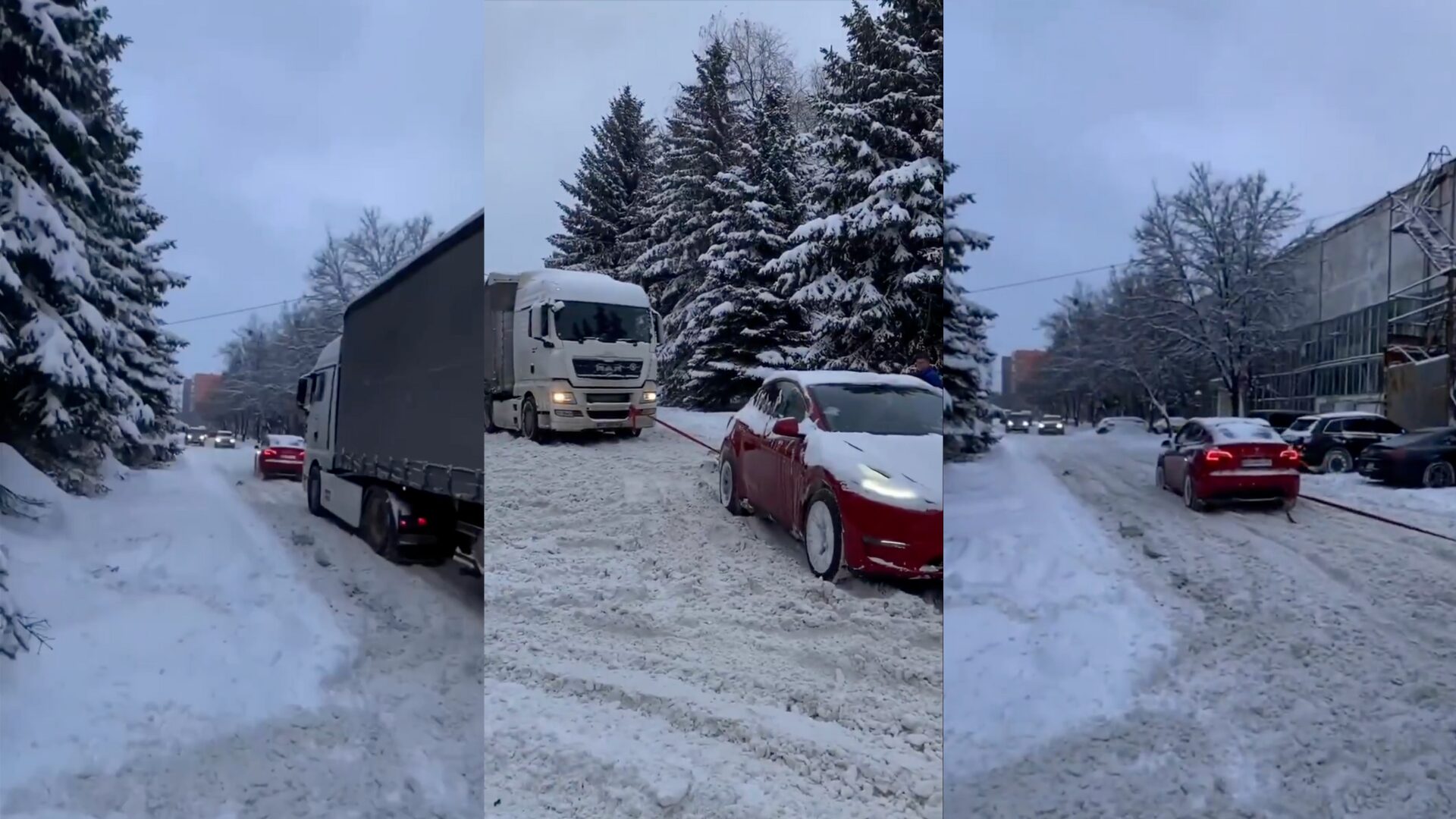 On le sait : les Tesla ont un couple instantané qui permet de faire quelques prouesses. Mais l’exemple partagé sur X en janvier 2026 est d’un autre genre : à Lviv, en Ukraine, une Tesla Model 3 semble tracter un énorme camion empêtré dans la neige. Dans la vidéo, la voiture avance tranquillement avec un attelage et permet au camion de se sortir de la situation — tout en gardant un contrôle exceptionnel de la direction.