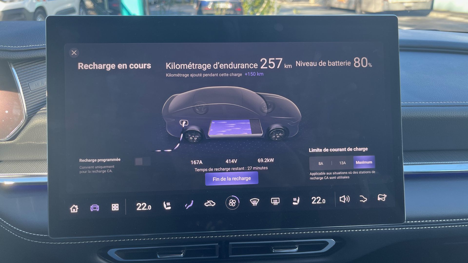 Contrairement à ce qu’on pourrait croire, toutes les voitures chinoises ne sont pas aussi performantes sur les aides à la conduite. En revanche, il y en a ici pléthore de série. La conduite semi-autonome (niveau 2) s’est montrée moyenne avec pas mal de petits à-coups dans le volant pour maintenir la trajectoire, tandis qu’elle abandonne dès qu’un virage trop marqué se présente.