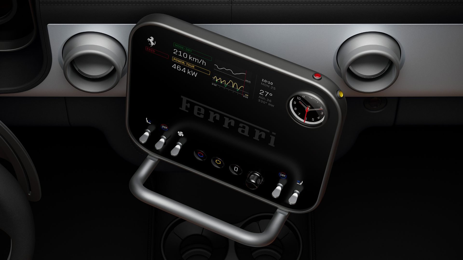 Jony Ive et Marc Newson ont réussi à transposer leur génie ergonomique et visuel tout en respectant scrupuleusement ce que doit être une Ferrari : une voiture à piloter. Avant même d’espérer en prendre le volant, on sait que les informations seront lisibles et que les commandes seront faciles à utiliser. De quoi garder notre attention sur ce qu’il se passe devant nous.
