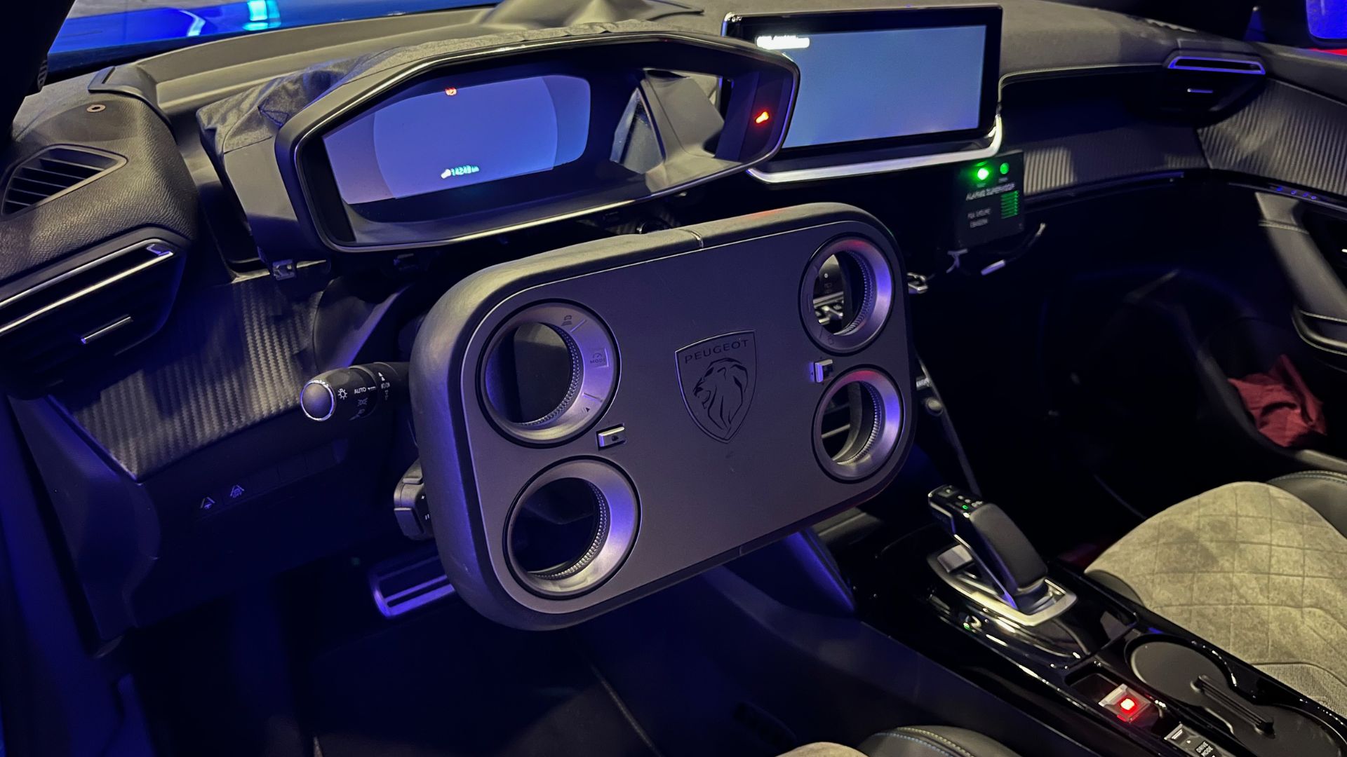 Évidemment, la pièce maîtresse du Peugeot Polygon est son volant baptisé Hypersquare. Cela fait depuis 2023 que la firme sochalienne nous tease cette innovation, et elle arrive enfin à sa maturité. Toutefois, cet élément est un projet de longue date, commencé en 2017, nous explique Arthur Mégy, l’un des ingénieurs développement chez Peugeot. Ce dernier nous confie d’ailleurs qu’avant d’être intégré dans un E-2008, l’Hypersquare a vu le jour dans des prototypes de 308 avec le volant à droite ! L’idée était plutôt simple (et ingénieuse) : expérimenter la direction électronique à gauche tout en gardant une liaison mécanique à droite. Un double cockpit façon auto-école.
