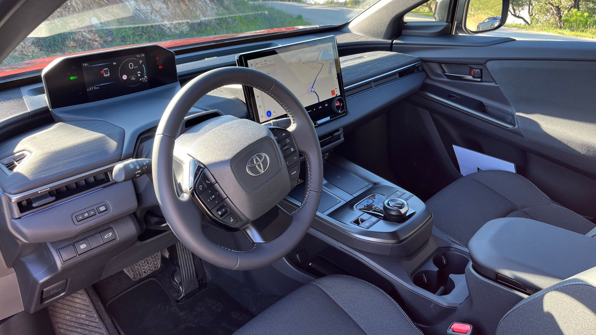 À bord, le paysage est familier, puisque le mobilier est repris de son grand frère, le bZ4X. Relativement épurée, la planche de bord est revêtue d’un matériau à la texture étonnante, un genre de toile enduite striée. Quelque peu austère, la présentation gagnerait à plus de fantaisie à l’image de son look extérieur. D’autant plus que les plastiques sont assez présents dans l’habitacle et le tissu noir de la sellerie présent dans mon modèle d’essai en finition « Design » est on ne peut plus basique. Par ailleurs, l’absence de toit panoramique (réservé à d’autres finitions) ne permet pas de faire pénétrer davantage la lumière. Heureusement, d’autres habillages sont proposés pour égayer l’ensemble.