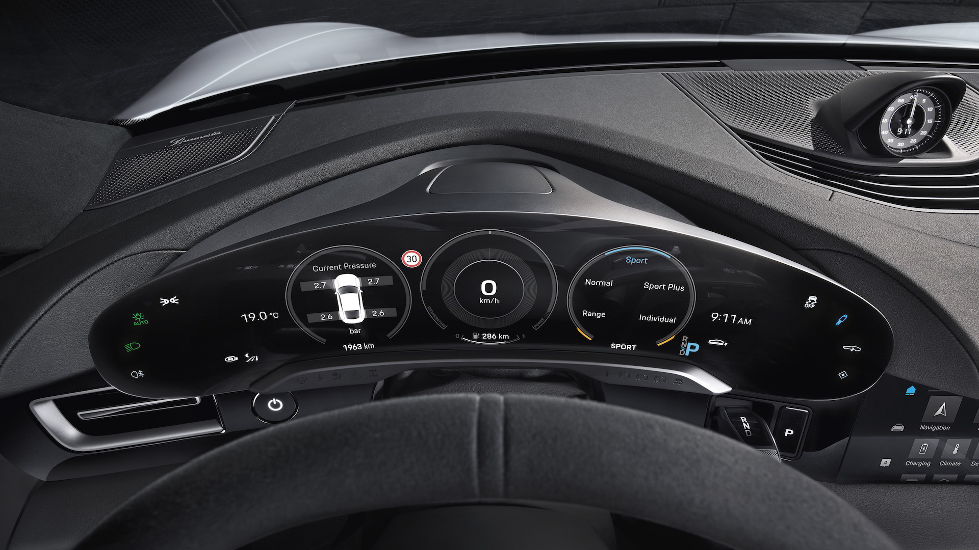 Le combiné d’instrumentation entièrement digital est plus large que le volant. // Porsche